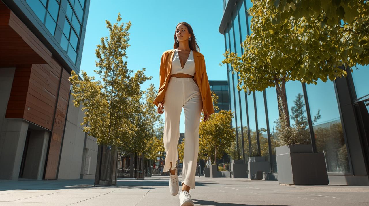 La frontière entre casual et formel s'estompe dans la mode contemporaine, ouvrant des possibilités créatives infinies. Associer un jean bien coupé avec un blazer structuré crée instantanément un équilibre entre décontraction et sophistication. Le pantalon fluide se marie aussi bien avec un t-shirt basique qu'avec une blouse délicate, selon l'intention recherchée. Les superpositions permettent de transformer radicalement une tenue au gré des circonstances : un gilet ajoute une dimension chaleureuse, tandis qu'un manteau élégant rehausse immédiatement le registre formel.